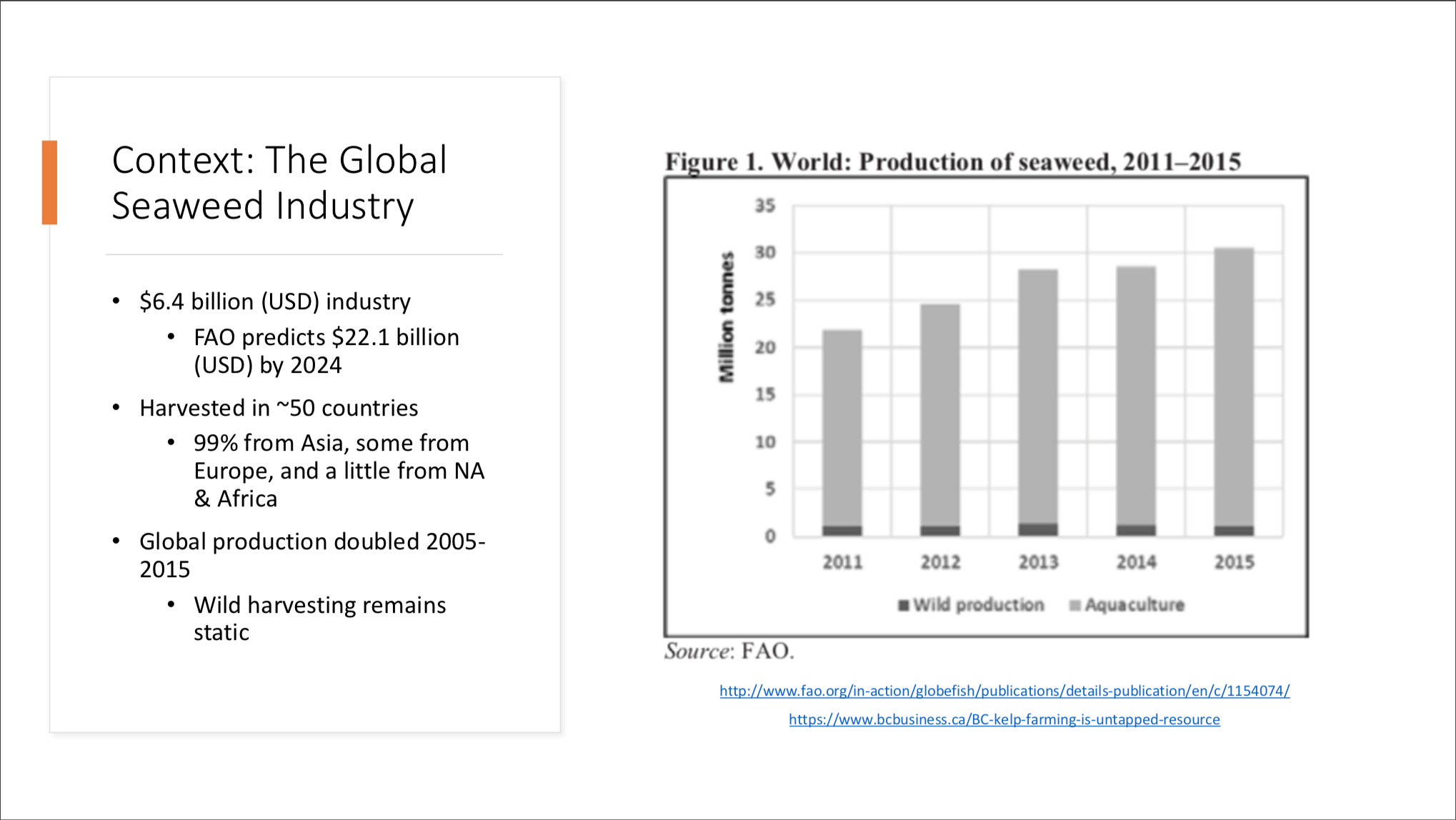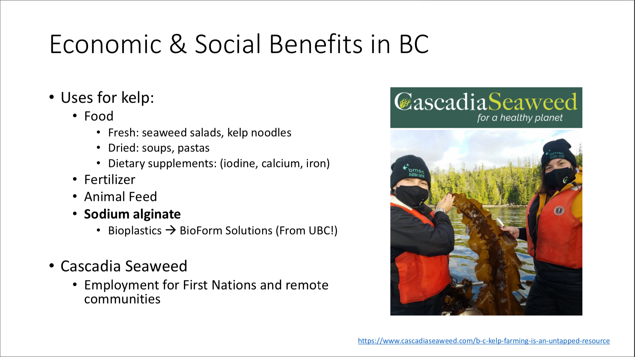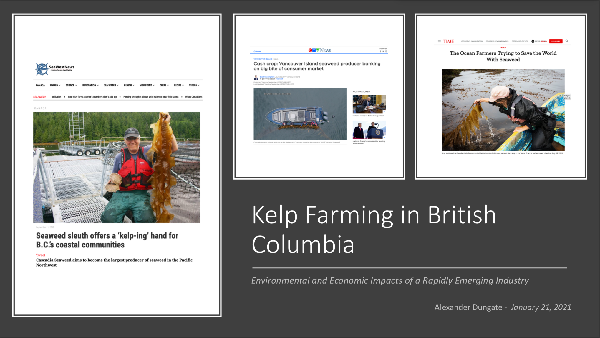 In recent years, there has been an explosion of news articles about kelp farms in BC. For this project I reviewed news articles and primary publications regarding kelp aquaculture in BC. Surprisingly, the kelp market can be incredibly lucrative!