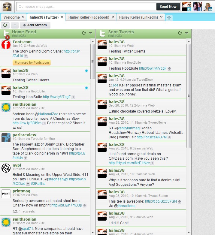 If you want to enter into the social media network world you need to know how Hootsuite works. Hootsuite is a tool created 3 year ago that help us to be updated and monitorize the social profile of our business or of our clients business. It allows you to monitorize at the same time Twitter, Facebook (personal profile and pages), LinkedIn, PingFM and others.