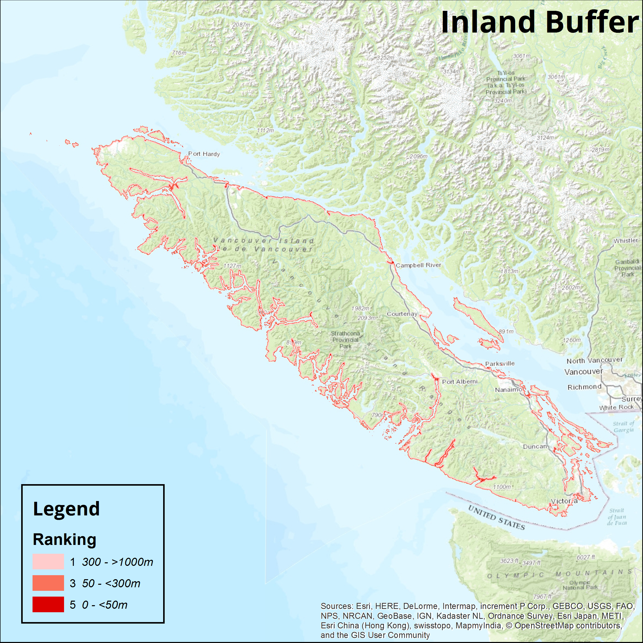 The metamorphic and igneous character of the rest of coastal Vancouver Island likely contributed to its lowered susceptibility. Of the areas along the west coast of Vancouver Island, the regions surrounding Port Alberni and Port Renfrew appear to be the most at risk.