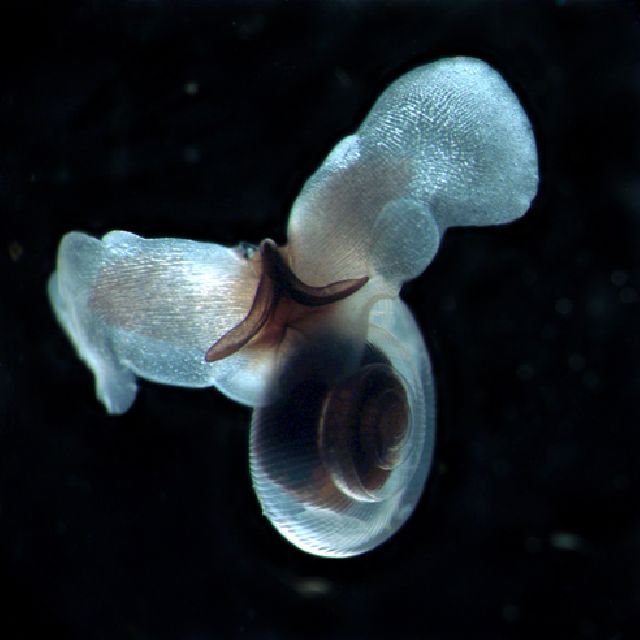 In the Arctic pteropods form the base of the food chain and are eaten by many larger organisms. As the oceans become more acidic the pteropods can’t grow or mature as quickly. They also can’t swim away as quickly from their prey and are eaten more often. With a diminishing population of pteropods, organisms that rely on them for food will also be at risk.