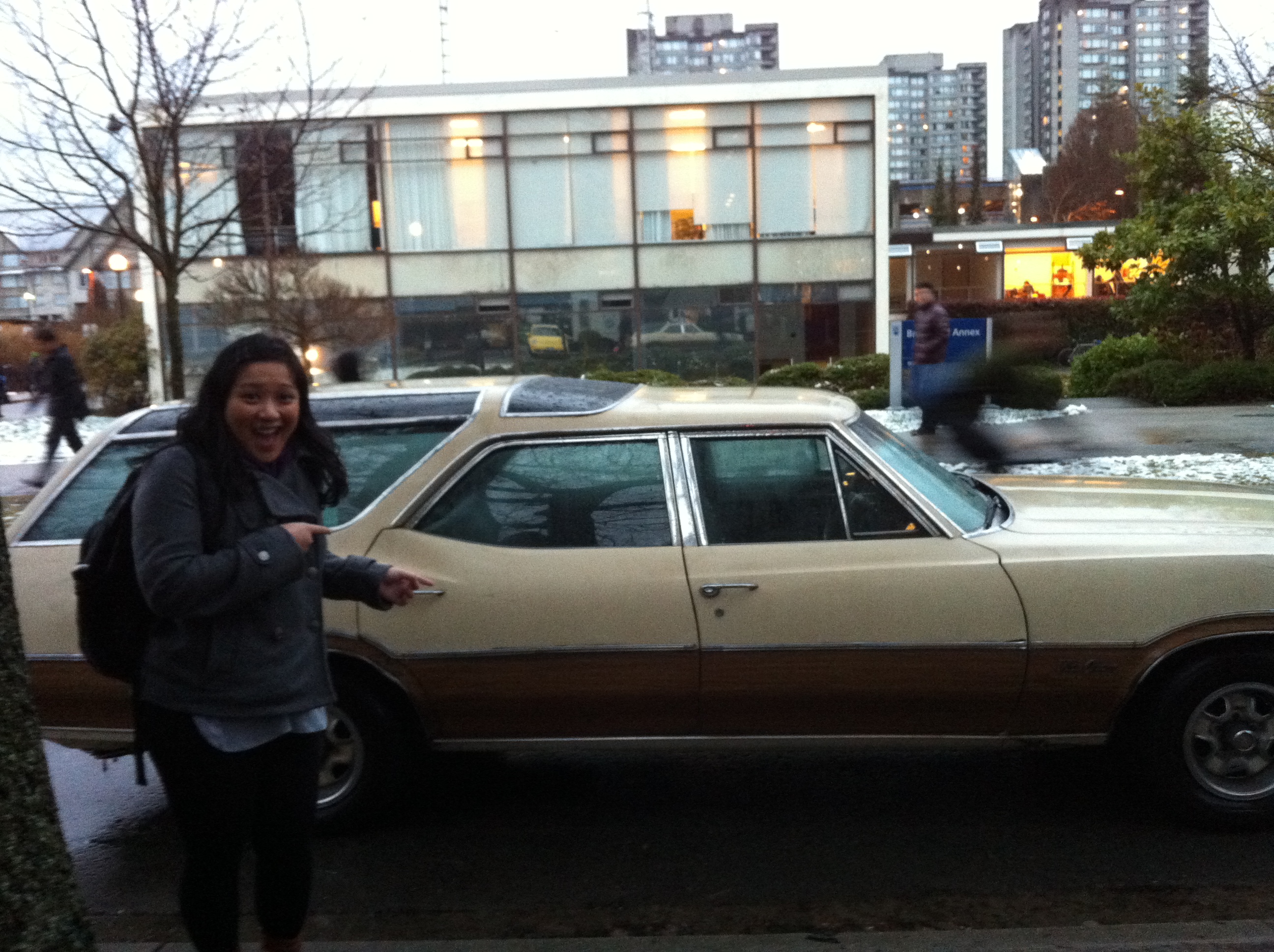 Day 2. Today. It’s raining pretty damn hard and I wake up with faith that I’ll meet Joshua Jackson and/or Anna Torv and eat red vines with them. Okay, maybe not the second part, but the meeting sounded possible and cool enough. When I get to UBC, I start schmoozing with crew members and PA’s just trying to charm my way into meeting anyone. One of them actually gives me a slide or a call sheet and tells me to keep it as a souvenir. Another, literally, opens up the Vista Cruiser, gets me to sit in it and tells me that he’ll snap a photo of me right beside it. (I felt almost like I was violating Bishop territory and space and that Walter Bishop might notice that someone else had been in his car. This is clearly Fringe-nerd thinking.) Anyway, this all happened at around 10:15. At 10:30, a car pulls up and I see Lance Reddick inside. I wave. He waves back and jumps out and says, hi. Too dumbfounded to even say anything, I just stand there like a complete idiot and think, BROYLES JUST SAID HI TO ME. Do normal people have this reaction to celebrities or is that just me?