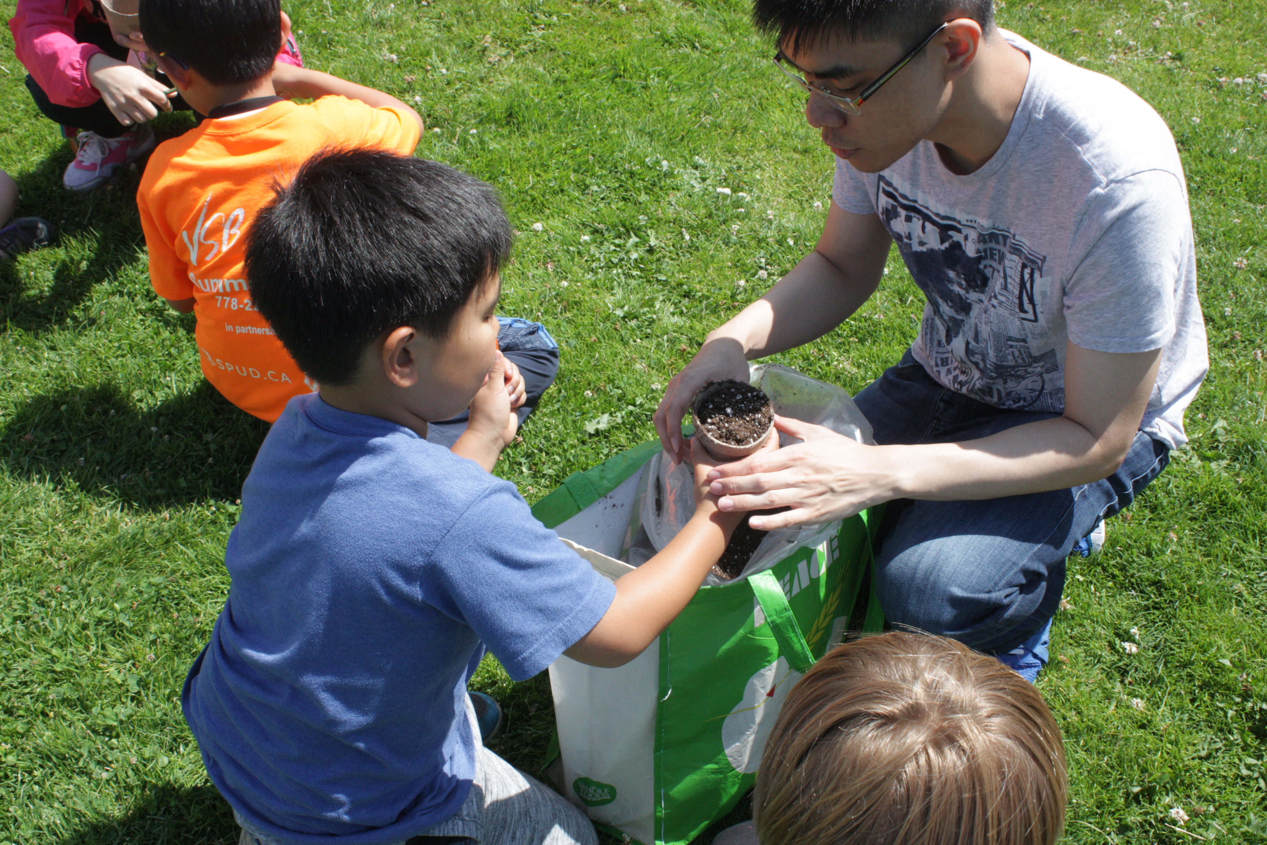 - The kids added seeds into biodegradable cups.