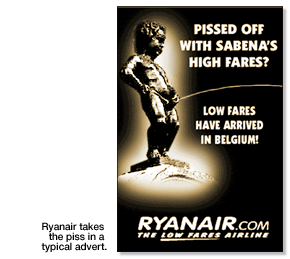 As long as its solely based on features that are concrete and verifiable, there is nothing wrong with their marketing strategy as long as it is successful. Some consumers may find their overly-aggressive ways humorous and memorable. It certainly helps that Ryanair has carved out a niche for itself by being the only budget airline in Belgium.