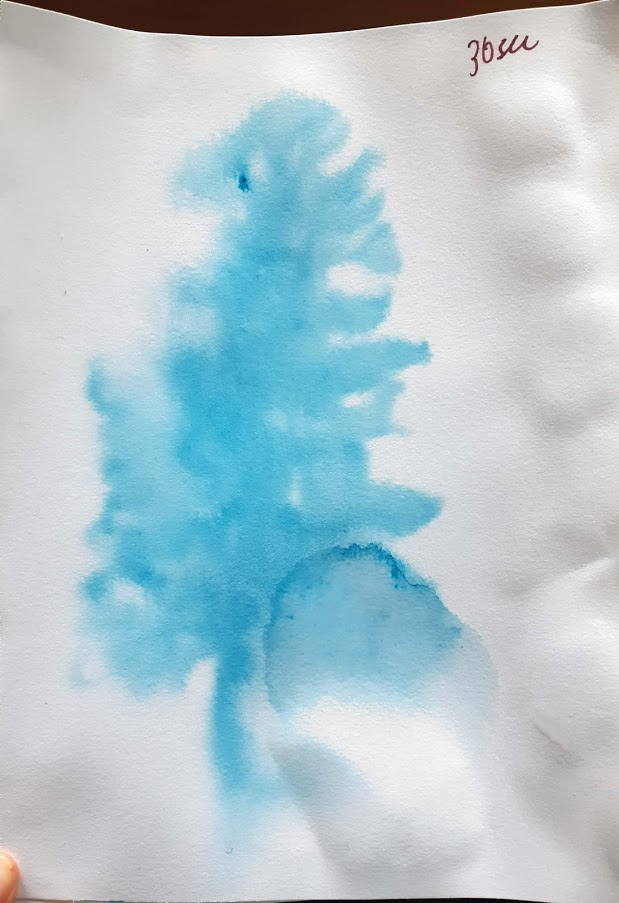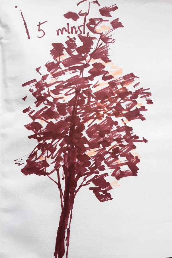 - Sheet 7: Apply a moderate wash of water to the paper (your thicker paper, if applicable). With a time limit of 30 seconds, draw the tree using Media 2, allowing the media to run and bleed in the water.