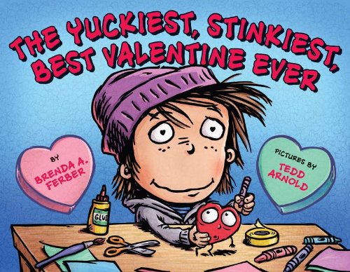 The Yuckiest, Stinkiest, Best Valentine Ever by Brenda A. Ferber and Tedd Arnold (author of Fly Guy). This book breaks out of the sappy Valentine’s mold by adding some interesting thoughts and lots of humour. Leon has a crush on a girl and is making a beautiful valentine for her but just as he’s finishing it comes to life and runs away. The valentine is convinced it would be a terrible idea for Leon to give his crush a valentine and seeks out the opinions of those he passes during his escape run. This is a Valentine’s book even boys appreciate.
