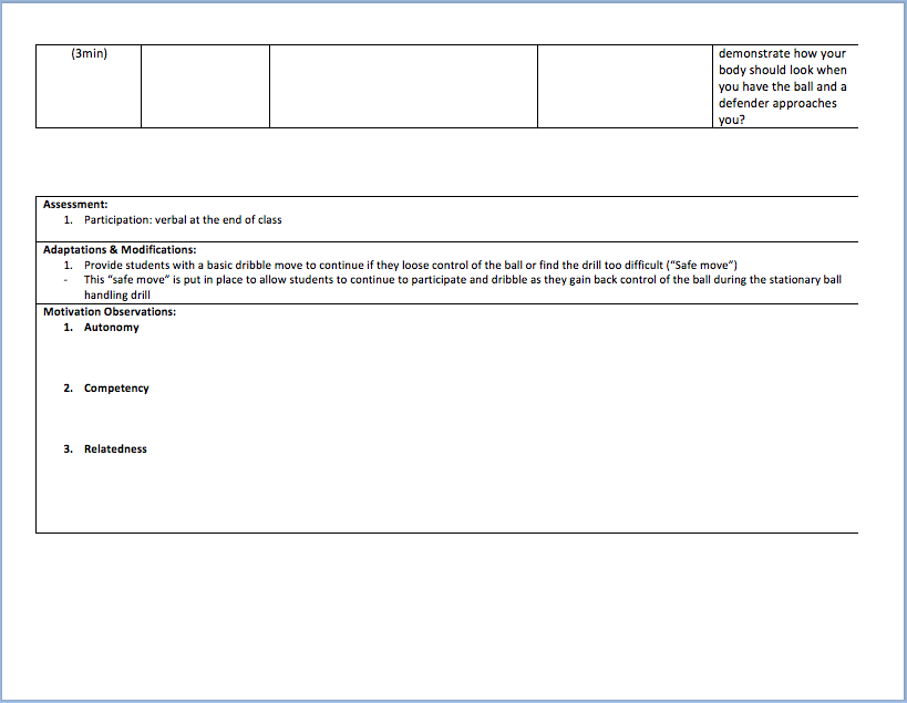 Each lesson plan will incorporate two motivation columns. One at the beginning of the lesson and one at the end for observations. The columns will address: