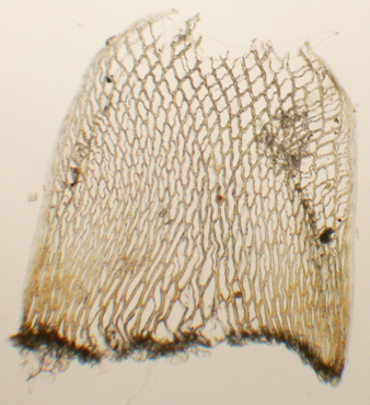 Branch leaves: ovate to ovate-lanceolate, margins entire or, in one case, toothed, involute near smooth apex; hyaline cells efibrillose, non-ornamented, with round to elliptic pores along commissures on convex surface, fewer, larger and round mostly free pores on concave surface; chlorophyllous cells triangular to trapezoidal in transverse section, more broadly exposed on concave surface, end walls not thickened.