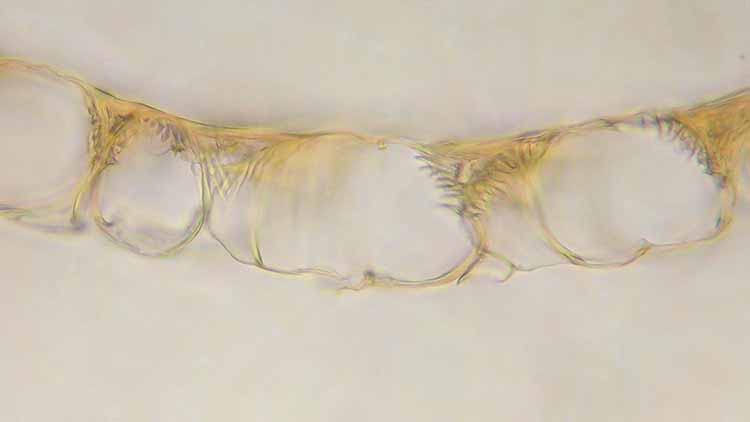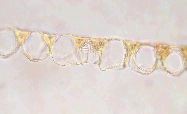 | 16a Branch leaves strongly imbricate, inner cell walls of branch leaf hyaline cells with ridge-like comb-fibrils | Sphagnum austinii | ||