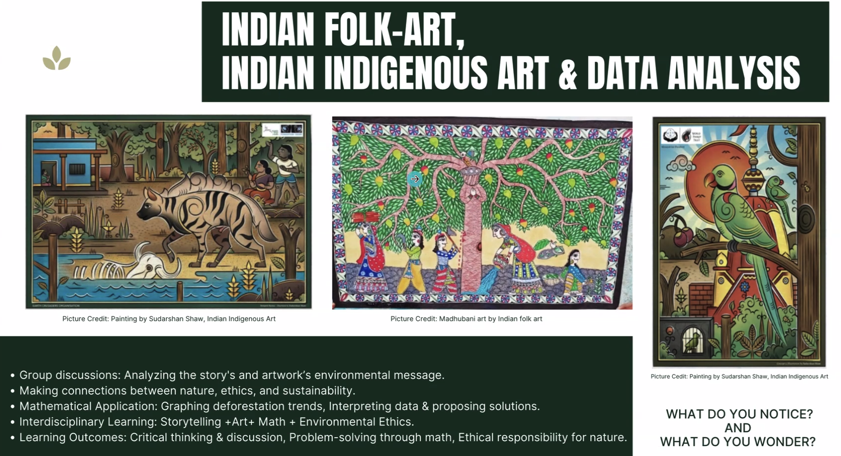 Students use math concepts like data analysis and plotting line graphs to understand deforestation trends in India, Canada, and globally, and understand that environmental challenges are interconnected globally. This interdisciplinary approach transforms math education into a space of curiosity, reflection, and action by integrating storytelling, data analysis, and cultural artistry. Students connect mathematical tools to real-world challenges, fostering both intellectual growth and environmental stewardship while also addressing the BC curriculum’s core competencies and content learning outcomes in data analysis, graphing, measurement, and number operations.